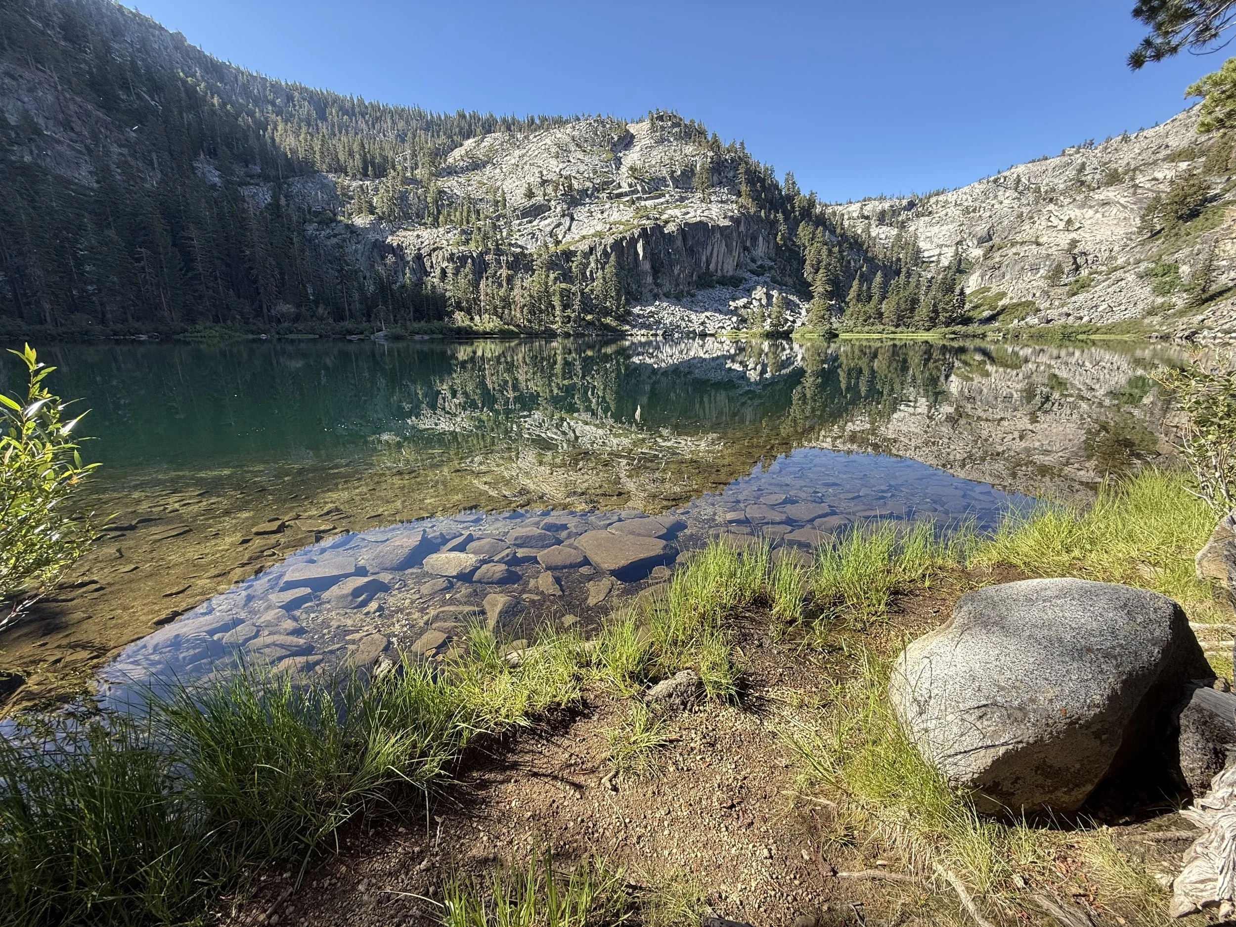 Eagle Lake near Lake Tahoe met all the requirements. This is a small lake located along the West shore of Lake Tahoe near Emerald Bay. We got to the trailhead around 2:45pm on a Friday and it took a couple passes for a parking spot to open up but we lucked out and got one on Highway 89. The parking lot is very small and fills up quickly because this is a very popular day hiking spot in the summer time.